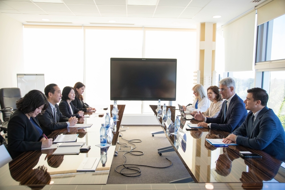 La întâlnire a participat și doamna Sawaka Takazaki, directoarea Biroului JETRO România, iar cele două părți au făcut un schimb de opinii cu privire la stadiul actual al investițiilor companiilor japoneze în România, în diverse sectoare, precum și la modalități de promovare în continuare a acestora.