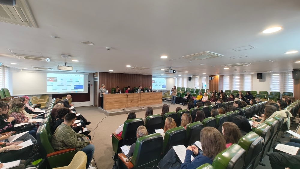 講義はブカレスト大学とオンラインのハイブリッドで開催され、日本語を学ぶ学生や日本語の専門家だけでなく、日本の古典文化に関心のある方々など約70名 が参加しました。コストレイエ副学長、片江大使、ニコラエスク副学部長の挨拶に続き、ツベタナ先生からエネルギーあふれる講演が行われ、世界最古の小説とも言われる源氏物語について学ぶ機会となりました。