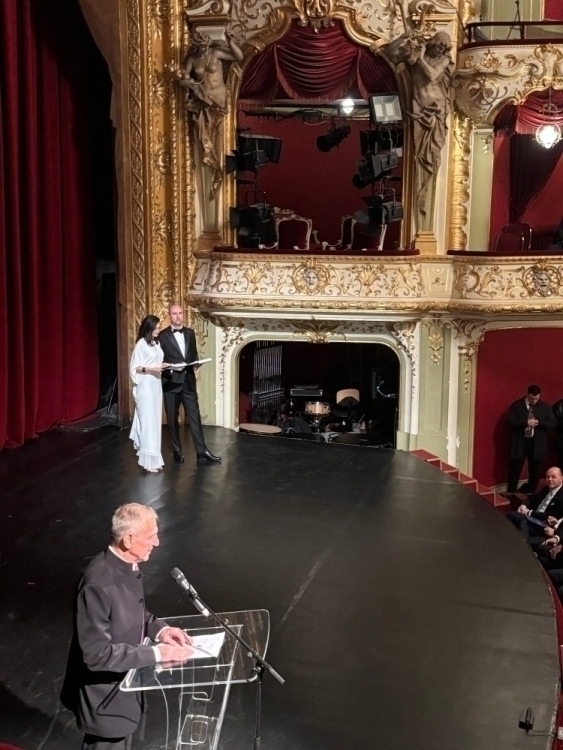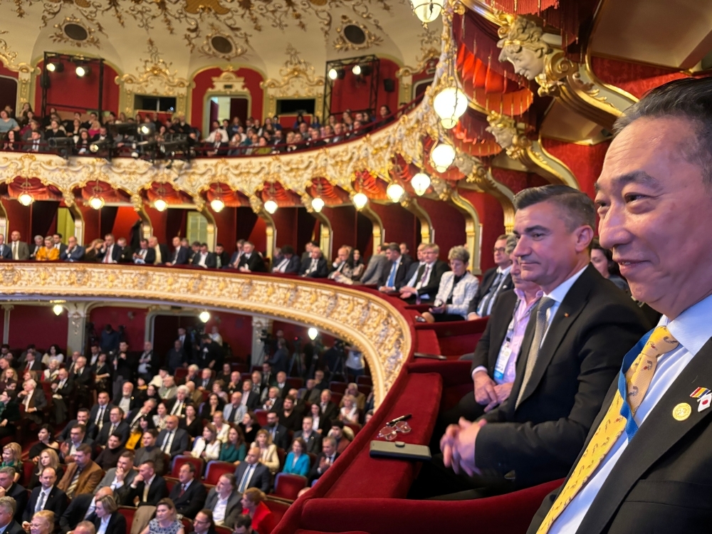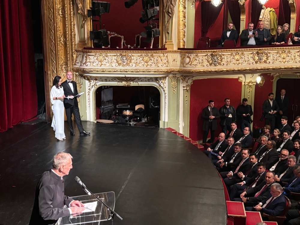 10月24日、片江大使は、アレクサンドル・ヨアン・クザ大学及びジョルジェ・エネスク芸術大学の創立165周年記念式典に出席しました。同式典にはニクショル・ダン大統領も出席しており、同式典に先立ち片江大使と立ち話をする機会に、大使は同日ヤシで日ルーマニア・イノベーションフォーラムが開催中であることなどを報告しました。