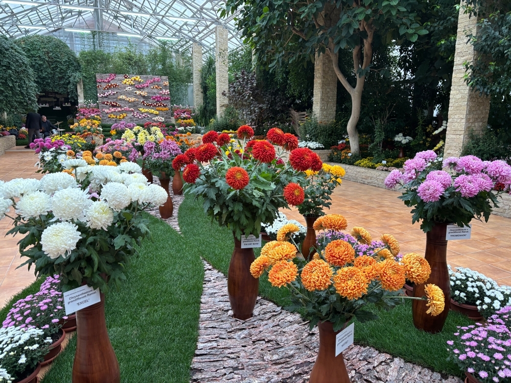 10月24日、片江大使は、ルーマニア最古の植物園であり、「Flori de Toamnă 2025(秋の花2025)」展が開催中のアナスタシエ・ファトゥ植物園を訪問しました。今年で49回目を数えるこの展覧会では、同植物園で栽培された、日本産の品種を含む400種以上の菊が数万本展示されています。