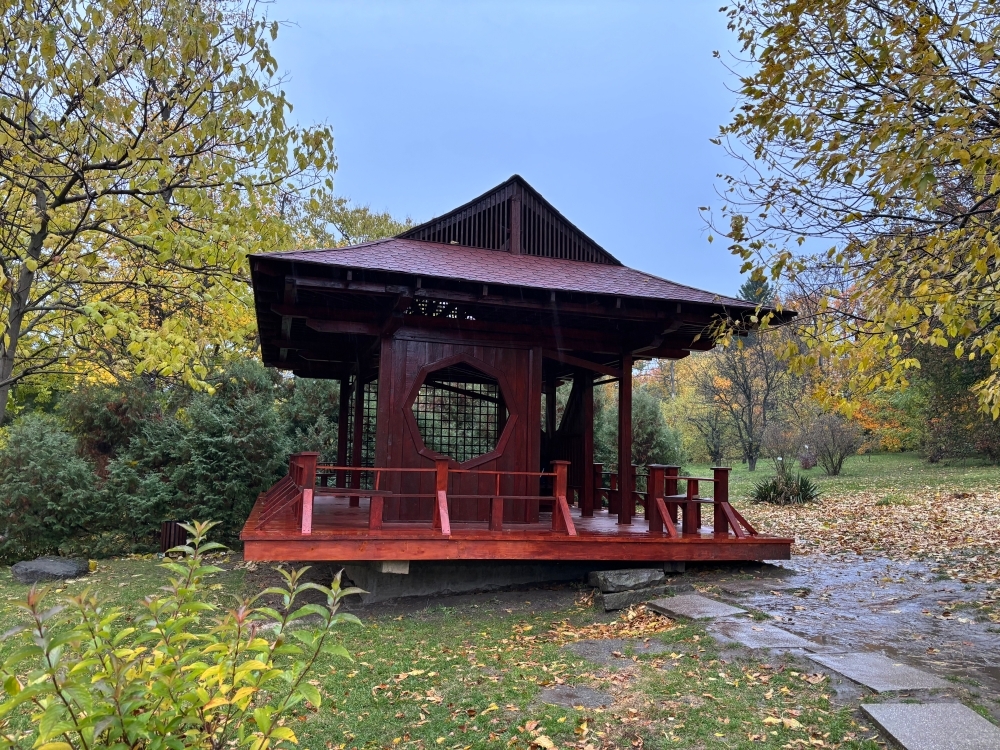 片江大使は、カタリン・タナセ園長に植物園の169年にわたる活動について伺い、桜や藤などの日本産の植物が植えられている区画も視察しました。