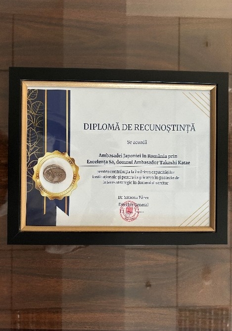 Ambasadorul Katae distins cu o Diplomă de Recunoștință de Institutul Național de Sănătate Publică din România