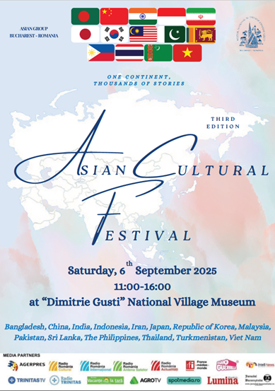 Sâmbătă, 6 septembrie a.c., între orele 11,00-16,00 va avea loc la Muzeul Național al Satului ”Dimitrie Gusti” din București, cea de-a III-a ediție a Festivalului Cultural Asiatic, la care va participa și Ambasada Japoniei!