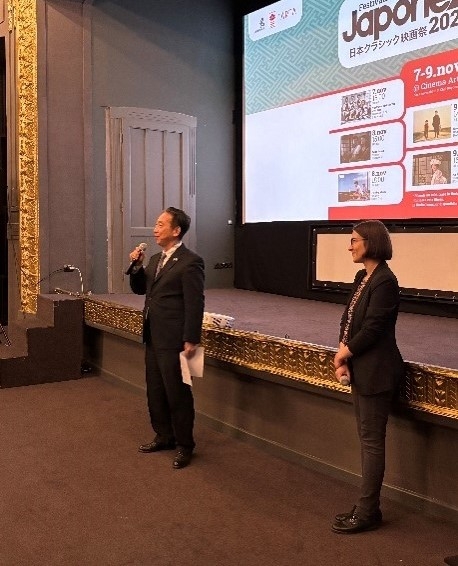 Pe data de 7 noiembrie a.c., aflat în vizită la Cluj-Napoca, Dl. Ambasador Takashi Katae a participat la ceremonia de deschidere a Festivalului Filmului Clasic Japonez 2025, organizat de Ambasada Japoniei, Fundația Japonia și Cinema Arta. În seara respectivă a fost proiectat filmul lui Yasujirō Ozu, „ Gustul ceaiului verde peste orez”, publicul bucurându-se de una dintre creațiile unuia dintre maeștrii filmului japonez. Festivalul Filmului Clasic Japonez de la Cluj-Napoca s-a derulat pe parcursul a 3 zile, în care au fost proiectate 5 filme, și s-a încheiat cu succes pe 9 noiembrie. Mulțumim tuturor celor care au participat și vă așteptăm și la București, la Cinema Muzeul Țăranului Român, începând cu 21 noiembrie.