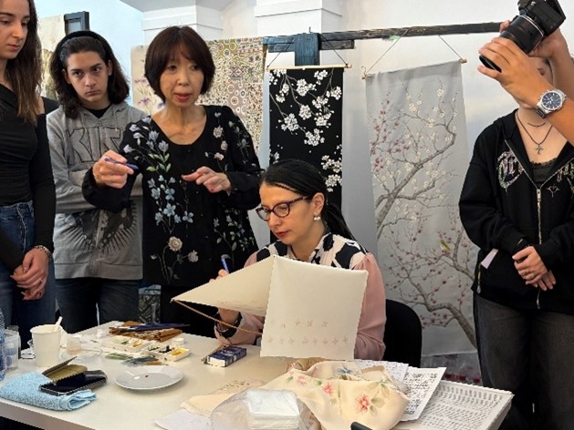 Participarea D-lui Ambasador la atelierul de vopsit în stil yuzen, organizat la Universitatea Româno-Americană