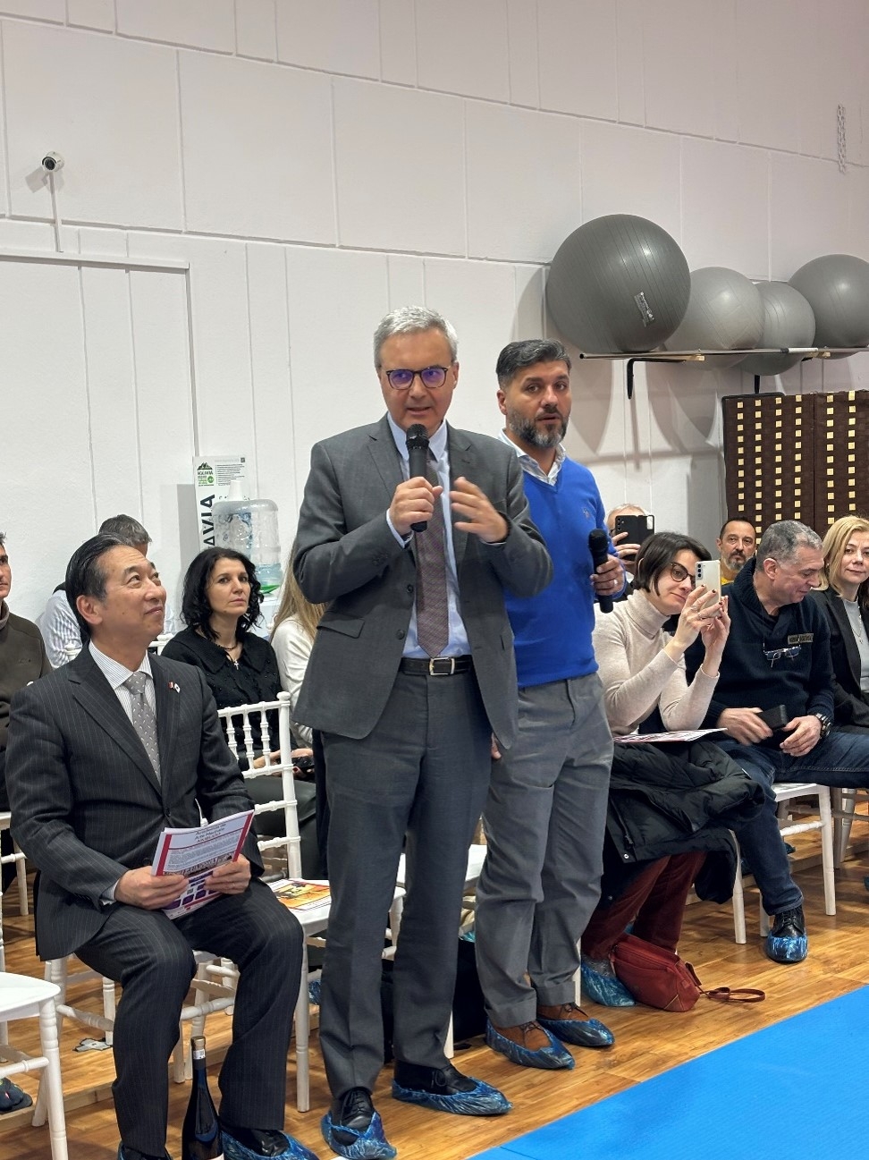 Pe data de 15 ianuarie a.c., Dl. Ambasador Takashi Katae a participat la Complexul Sportiv Național ”Lia Manoliu” la ceremonia ”kagami-biraki”, care a marcat începutul sesiunilor comune de antrenament pentru artele marțiale, precum aikido, karate, iaido și altele. În deschiderea evenimentului, Dl. Ambasador, alături de Dl. Nicolas Warnery, Ambasadorul Franței în România și ceilalți invitați, i-a încurajat pe toți participanții să practice cu sârguință și-a exprimat speranța pentru intensificarea schimburilor dintre Japonia și România prin intermediul artelor marțiale japoneze.