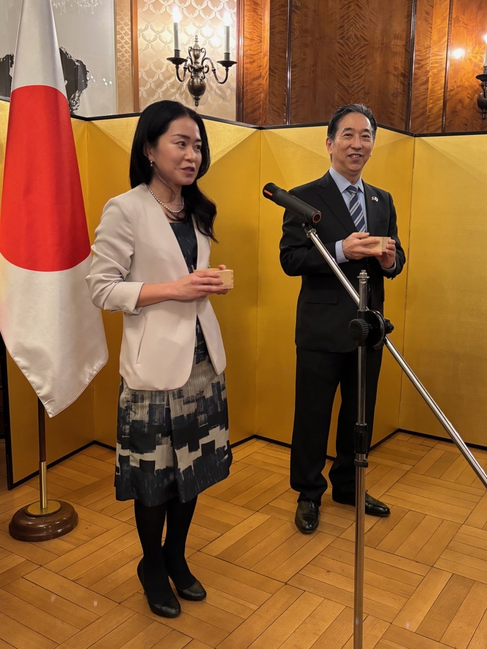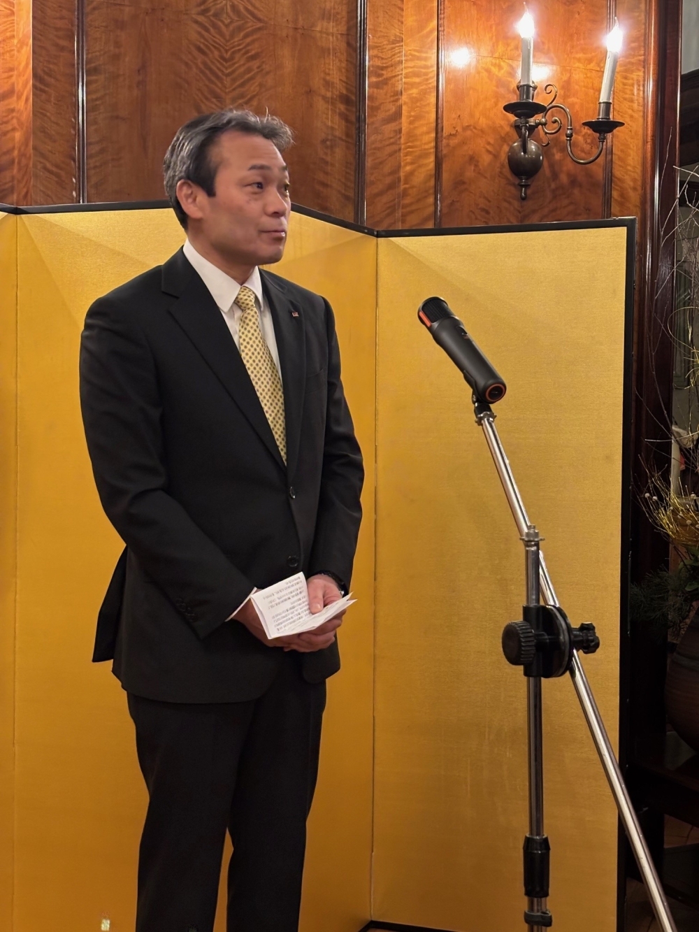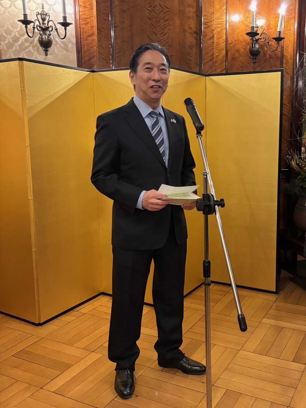 1月16日、片江大使主催で、新年祝賀会が行われ、当地日本人会幹部、日本企業関係者、学術・文化・芸術等の分野で活躍している在留邦人約60名の参加がありました。